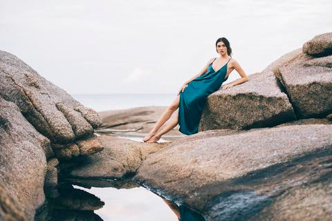 Sophisticated silhouettes & strong styles in hand-cut soft silks.